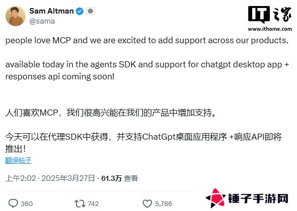 本站注意到,OpenAI 联合创始人兼首席执行官 Sam Altman 还特意发文赞扬 MCP,可见其对 AI 智能体的重要性。