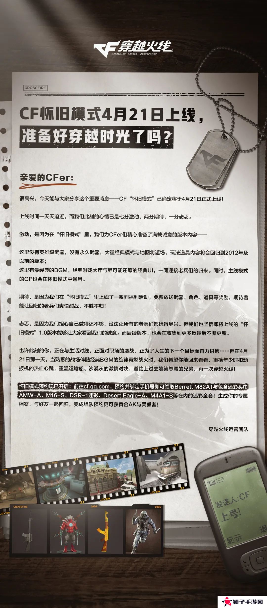 《穿越火线》游戏怀旧模式定档 4 月 21 日:梦回 2012 年,没有英雄级武器