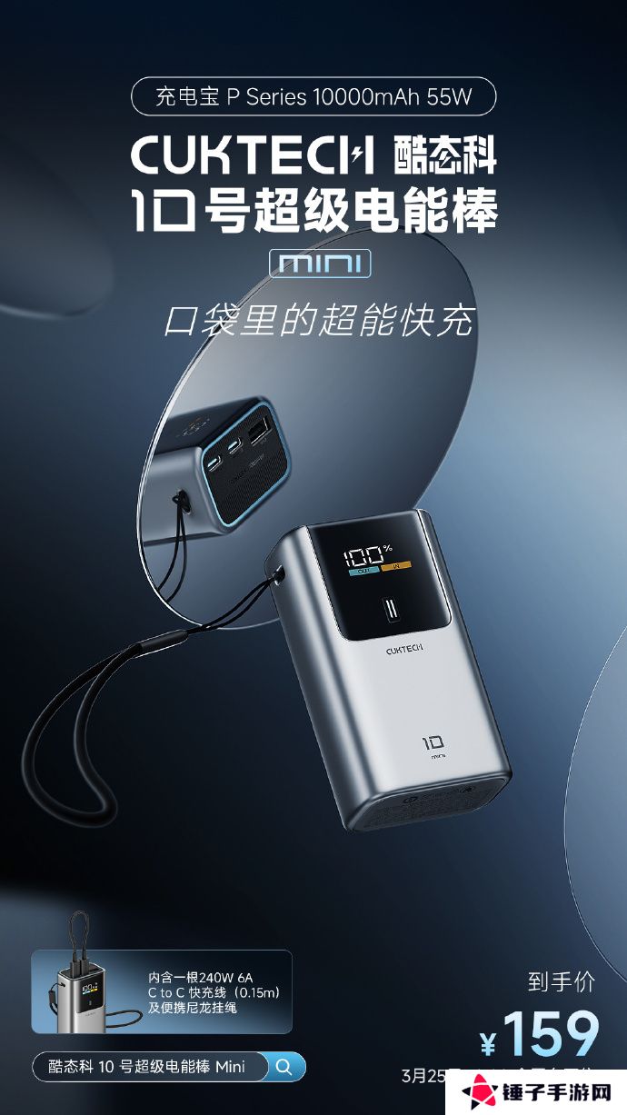 酷态科 10 号超级电能棒 Mini 今年 3 月末全平台开售,Mini 体积仅重约 217g,55W MAX 双向来电。