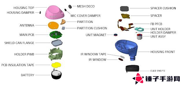 耳机配备双 MEMS 降噪麦克风(前馈 + 反馈),结合 V1 芯片预计降噪效果提升。电池沿用 VDL 和 High-Power 双供应商策略,耳塞电池容量未披露,充电盒电池保持 3.85V / 500mAh 规格。拆解还发现金属屏蔽罩覆盖主芯片,而触控传感器与天线布局基本延续前代设计。