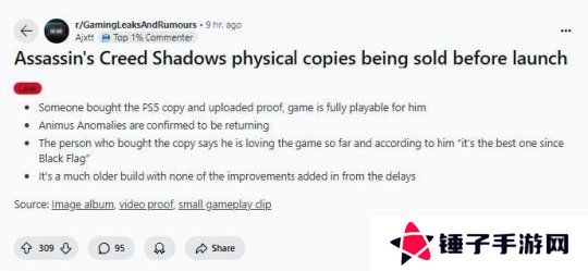 100美元游戏真来了 《刺客信条:影》偷跑 还是未修改版本