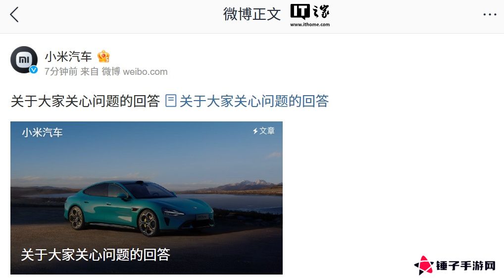 本站 4 月 1 日消息,在“SU7 高速碰撞爆燃”发生后,小米汽车今晚发布《关于大家关心问题的回答》。