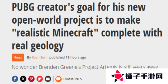 《绝地求生》开发者、Brendan Greene日前对媒体介绍了自己的新游项目,使用了(a realistic Minecraft)的词语,明确表示意图打造真实版《我的世界》,不仅仅体现在游戏玩法的真实度,更加体现了对现实生态和环境的重现。