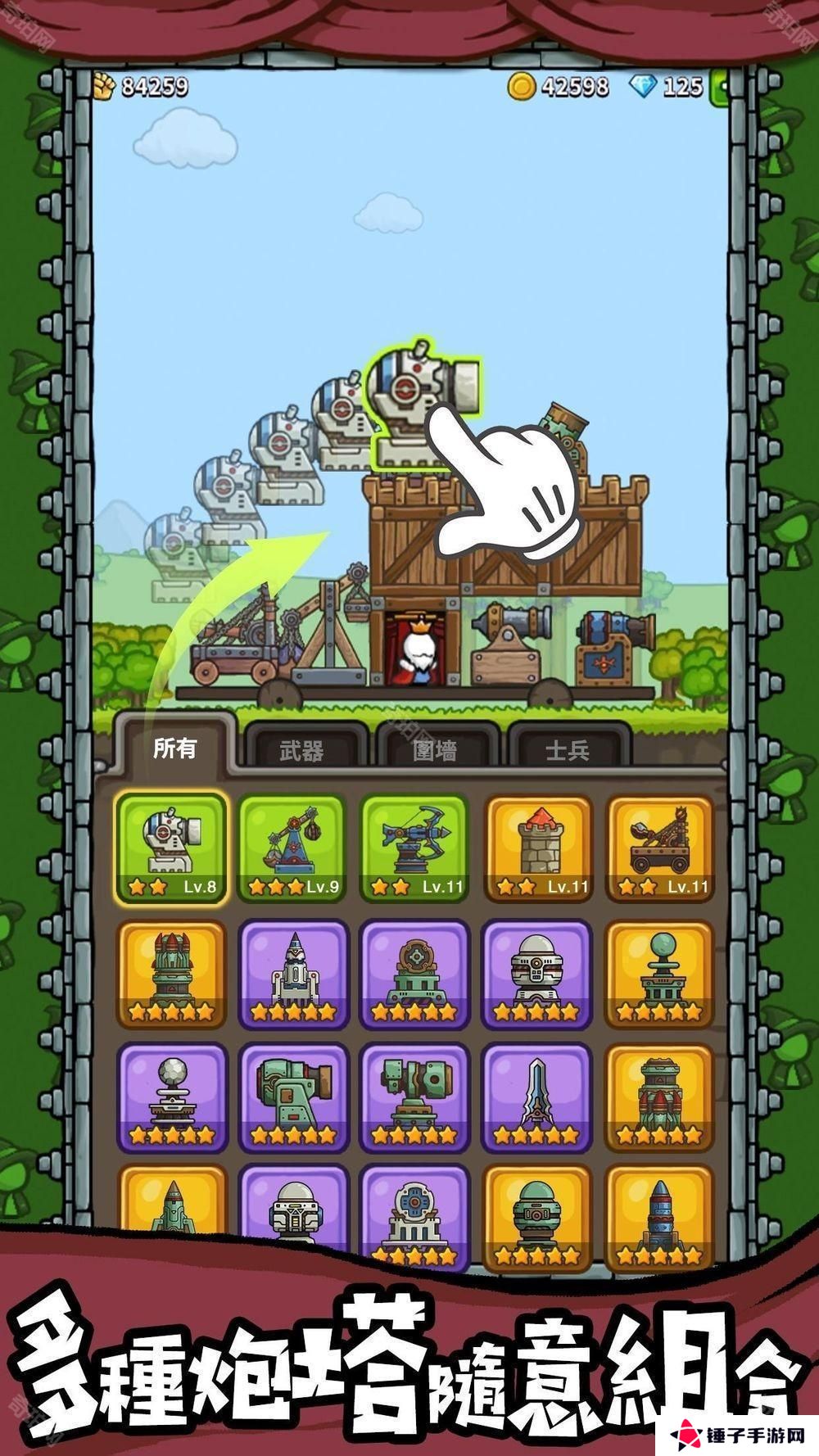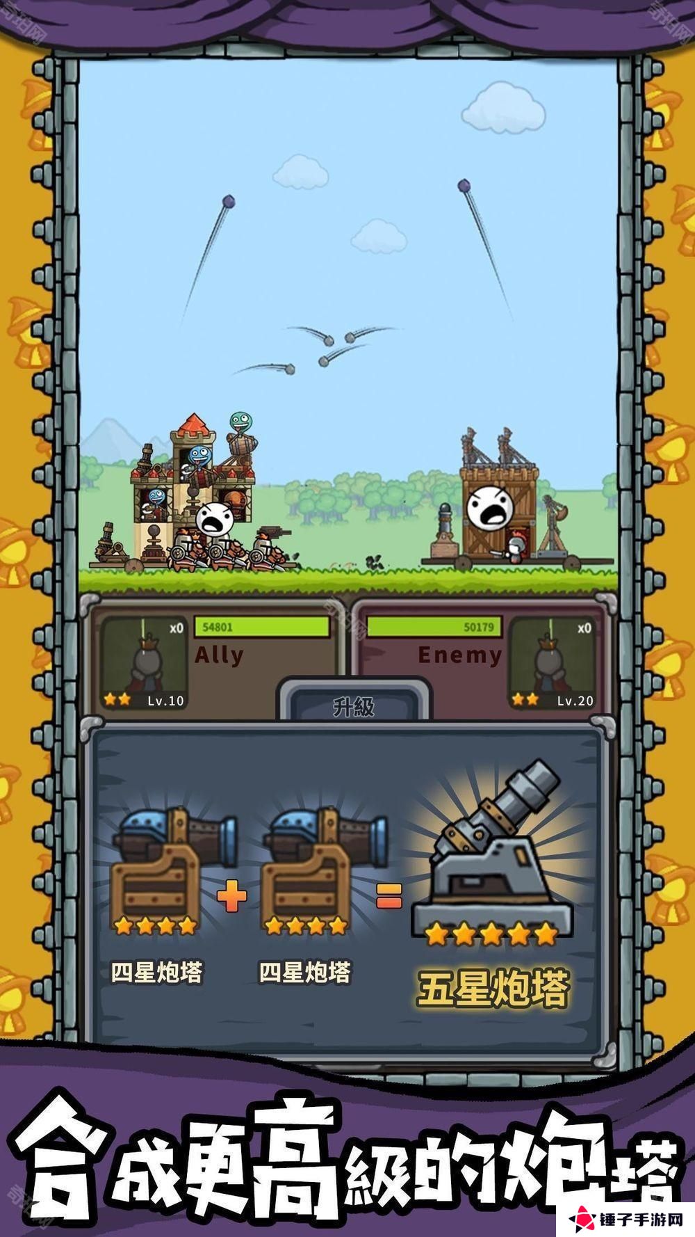 不断合成获得更强的防御塔和英雄,碾压敌人!