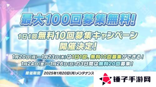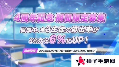 此外,1 月 20 日(一)起游戏内会举办「1 日 1 回免费 10 回招募活动」,且为纪念《蔚蓝档案》的 4 周年,★3 学生的出现机率从 3% 提升至 6%。