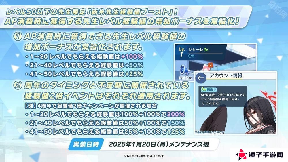 1 月 20 日(一)维护后,等级 50 以下的老师消费 AP 时获得经验值增加