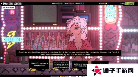 这群乐手可不是省油的灯,他们疯癫、躁动、放纵,甚至可能一场演出都撑不过去。而你,就是他们的定海神针。确保他们准时上台,别让破烂音箱毁了一场好演出,至少得让他们每周吃上几顿像样的饭!