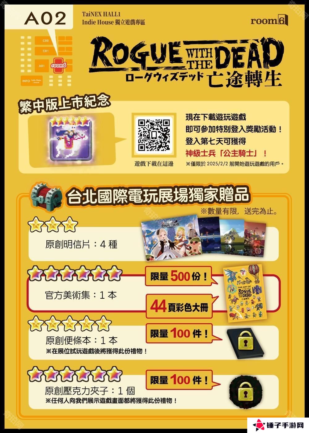 官方同时宣布,《Rogue with the Dead - 亡途转生》将参加于 2025 年 1 月 23 日至 26 日在台北南港展览馆举办的「2025 台北国际电玩展」。展会期间,玩家可在现场设有的试玩区体验游戏,同时还有独家限量周边等待大家收藏。此外,各式精彩活动将在展会中举行,诚邀玩家共襄盛举。