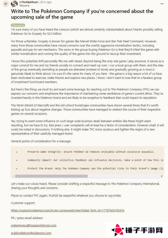 因开发商计划卖出《宝可梦 GO》 引发玩家对游戏未来的担忧