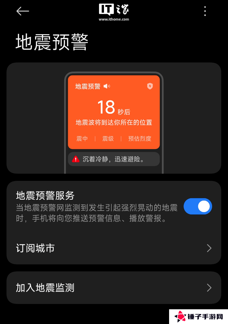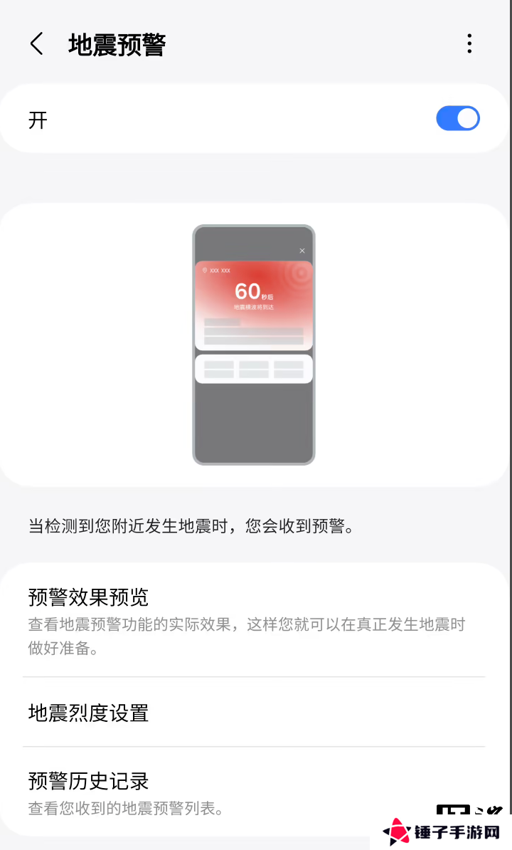 开启后当检测到地震时,会及时向用户发送地震预警通知。