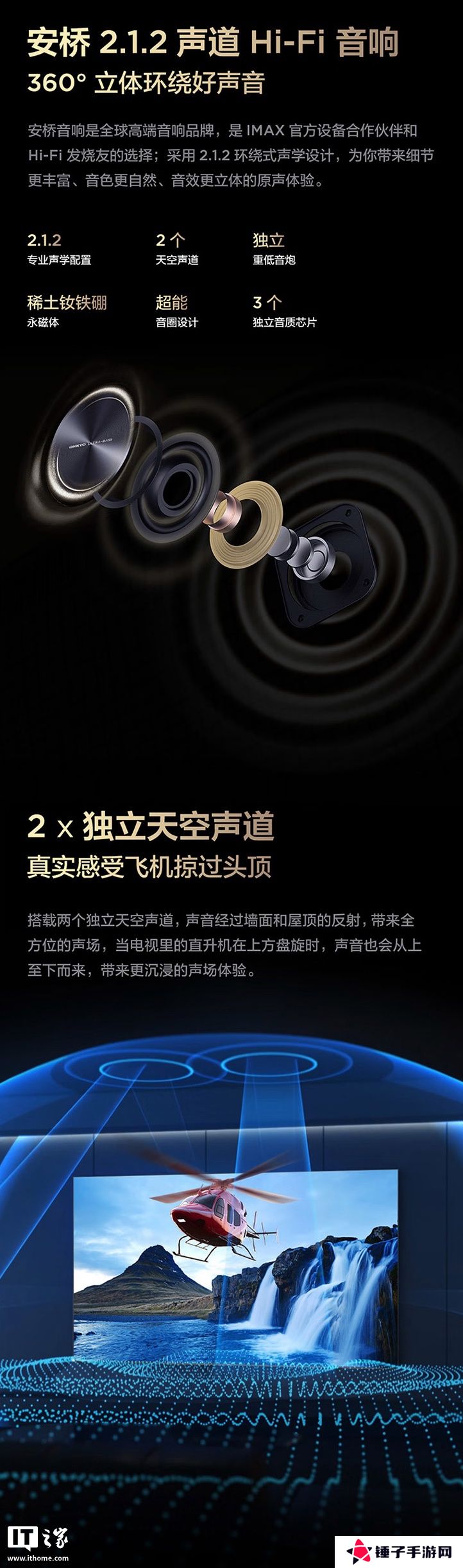 系列电视配备安桥2.1.2声道Hi-Fi音响,配备2个独立天空声道,内置“灵控系统3.0”,支持AI助理,电视配备TSR AI画质芯片。