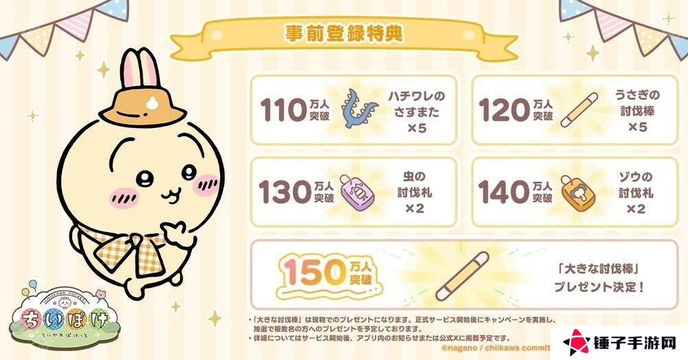 此外,事前登录人数达成 150 万人时的奖励已追加。当达成 150 万人时,将举办实物「巨大讨伐棒」的抽奖活动。