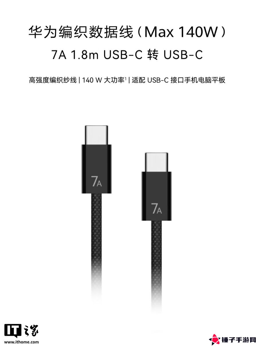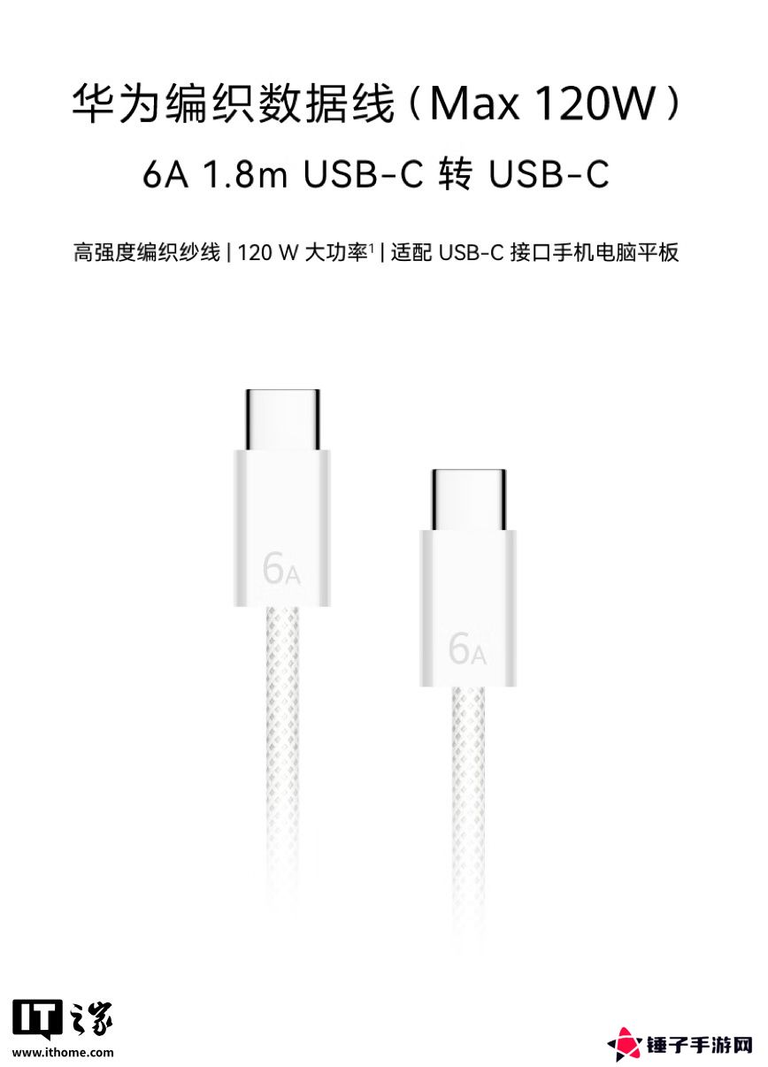 本站 3 月 29 日消息,华为现已在京东上架1.8米长的USB-C编织数据线(充电线),分为 6A(120W)及 7A(140W)版本,定价分别为99元 / 129元。