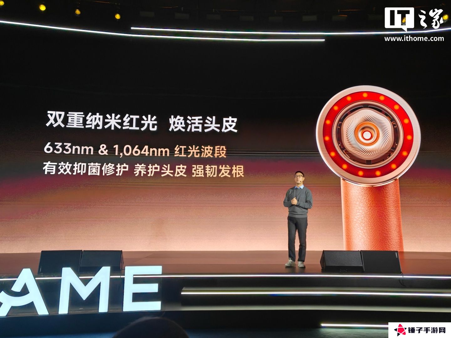 此外,本站注意到该吹风机配备双重纳米红光技术,分别覆盖633nm和 1064nm波段,号称可实现有效抑菌修护。