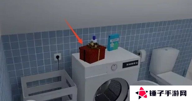 ①浴室的洗衣机上