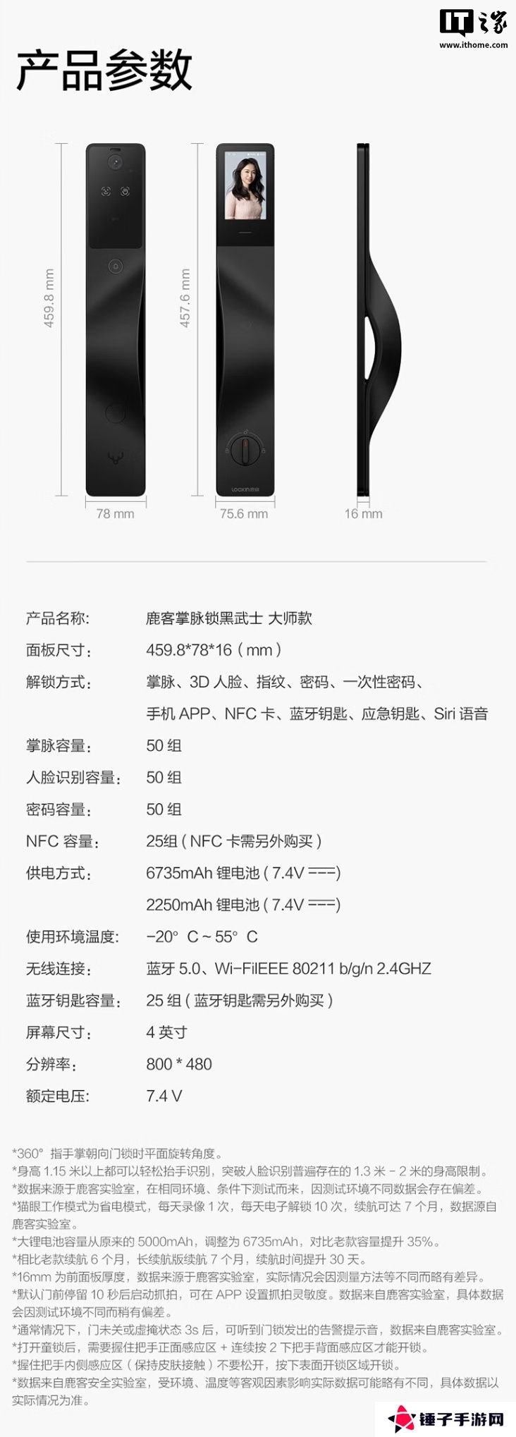 本站 3 月 29 日消息,鹿客现已在京东上架一款“鹿客掌脉锁黑武士大师款”,主打“掌静脉识别 + 人脸识别”,支持苹果HomeKit和米家App,定价为 4099元。