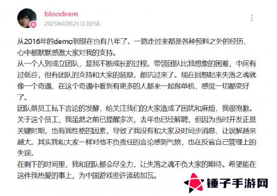 对于广大玩家来说,能尽快品到新的国产单机游戏,当然是一件值得开心的事情。但在作品正式上线前,日前《失落之魂》的主创却率先在社交媒体平台上发布了一则道歉声明。