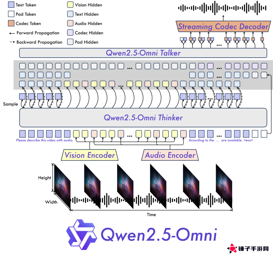 全能创新架构:Qwen 团队提出了一种全新的 Thinker-Talker 架构,这是一种端到端的多模态模型,旨在支持文本 / 图像 / 音频 / 视频的跨模态理解,同时以流式方式生成文本和自然语音响应。Qwen 提出了一种新的位置编码技术,称为 TMRoPE(Time-aligned Multimodal RoPE),通过时间轴对齐实现视频与音频输入的精准同步。