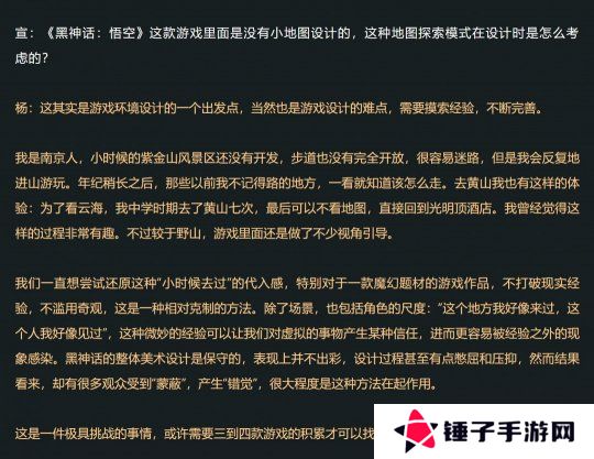 此外,对话还提到《黑神话》游戏没有小地图问题。