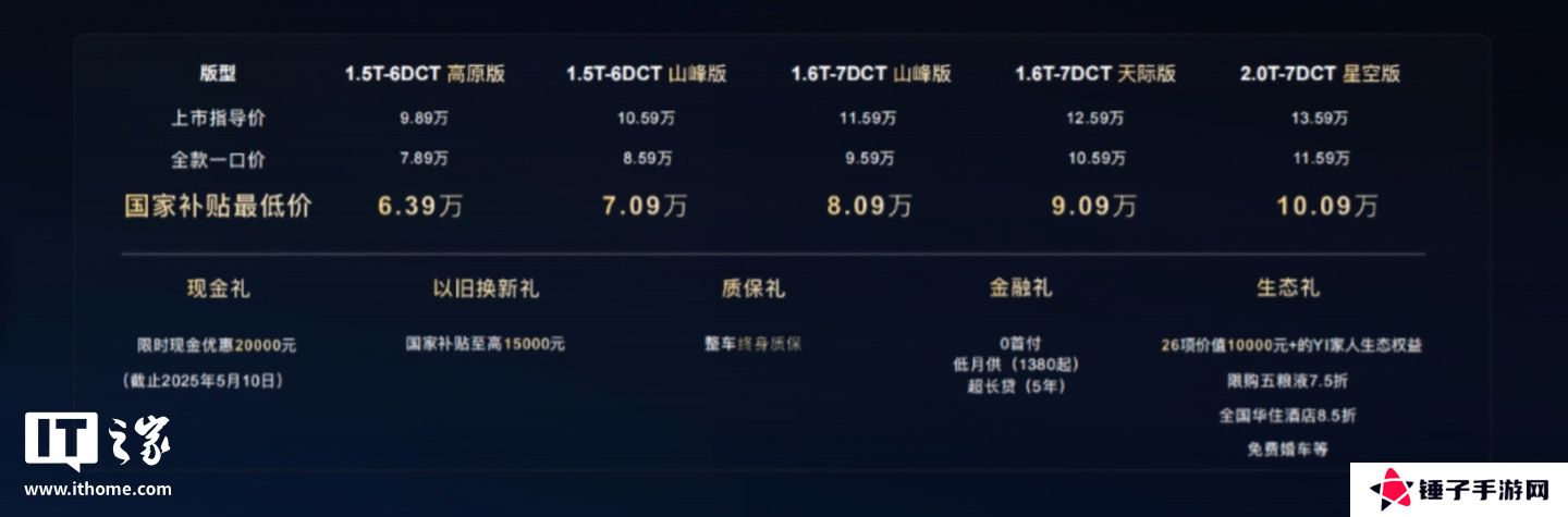 1.5T-6DCT 山峰版:10.59万元,全款一口价8.59万元