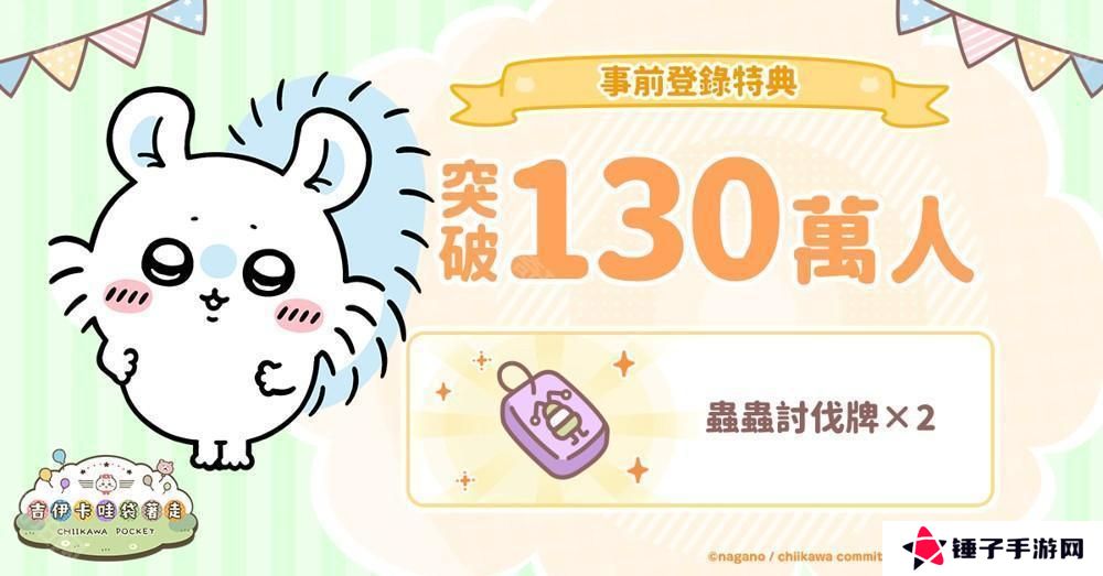 由 Applibot 负责企划、制作、开发及营运的智慧型手机游戏《吉伊卡哇口袋版(吉伊卡哇 Pocket)》于2月26日宣布事前登录人数突破 130 万,将赠送所有玩家游戏内道具【虫虫讨伐牌 ×2】,同步公开角色介绍以及 3 月月历。