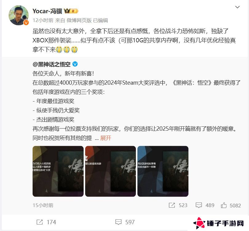 游戏主创冯骥在微博中是这么写道:“虽然结果并未出乎预料,但全面获胜后仍感心潮澎湃。大家的战斗力实在惊人,唯独缺少了Xbox的那件袈裟……似乎有些遗憾(唉,都是那10G的共享内存闹的,没有几年的优化经验,这难关可真不好过【泪】【泪】【泪】。”