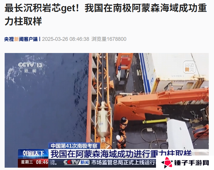 本站 3 月 26 日消息,据央视新闻报道,中国第 41 次南极考察队在阿蒙森海进行大洋考察期间,除了对该海域开展常规调查研究外,还利用长柱状活塞重力柱取样器进行重力柱取样作业。本次取样获得了目前我国在南极阿蒙森海海山区域最长的沉积岩芯,可用于揭示阿蒙森海古海洋与古环境演化。