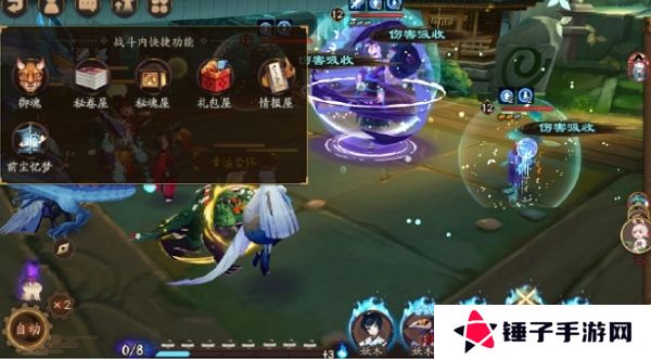 2、等级≥15级的玩家可在以上战斗副本中,点击左上角「战斗内快捷功能」展开功能选项,选择对应功能图标即可跳转使用御魂、秘卷屋、秘魂屋、礼包屋、情报屋、前尘忆梦等功能。