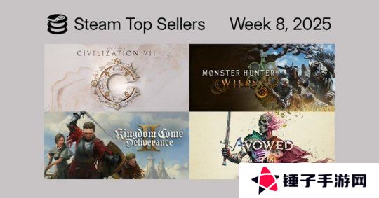 《文明7》位列榜首、《怪物猎人:荒野》第二、上期销冠《天国:拯救2》排名第三。黑曜石新作《宣誓》位列第五,FS社的《艾尔登法环 黑夜君临》开启首轮网测后,也收获了大量玩家的关注,靠着预售登上榜单。
