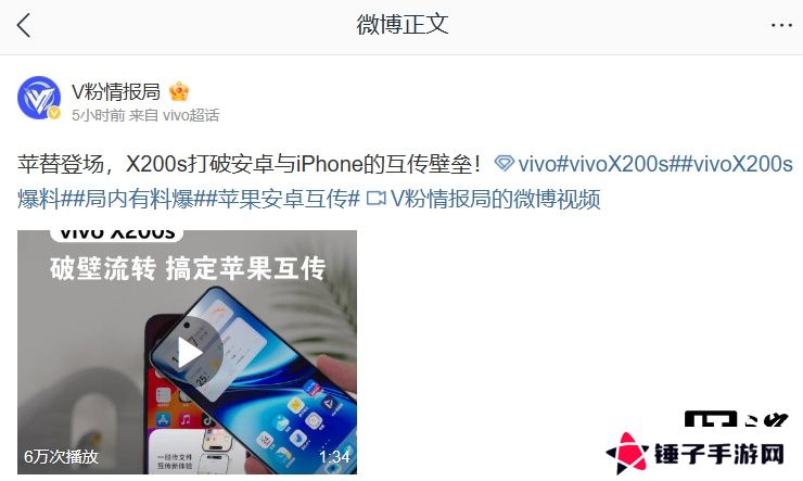 据介绍,vivo X200s 手机支持「破壁流转」,可接 iPhone 电话、接收 iPhone 短信 / 通知等信息,同时还支持 iPhone 位置共享(视频画面显示,iPhone 端需下载 vivo 推出的互传 App)。