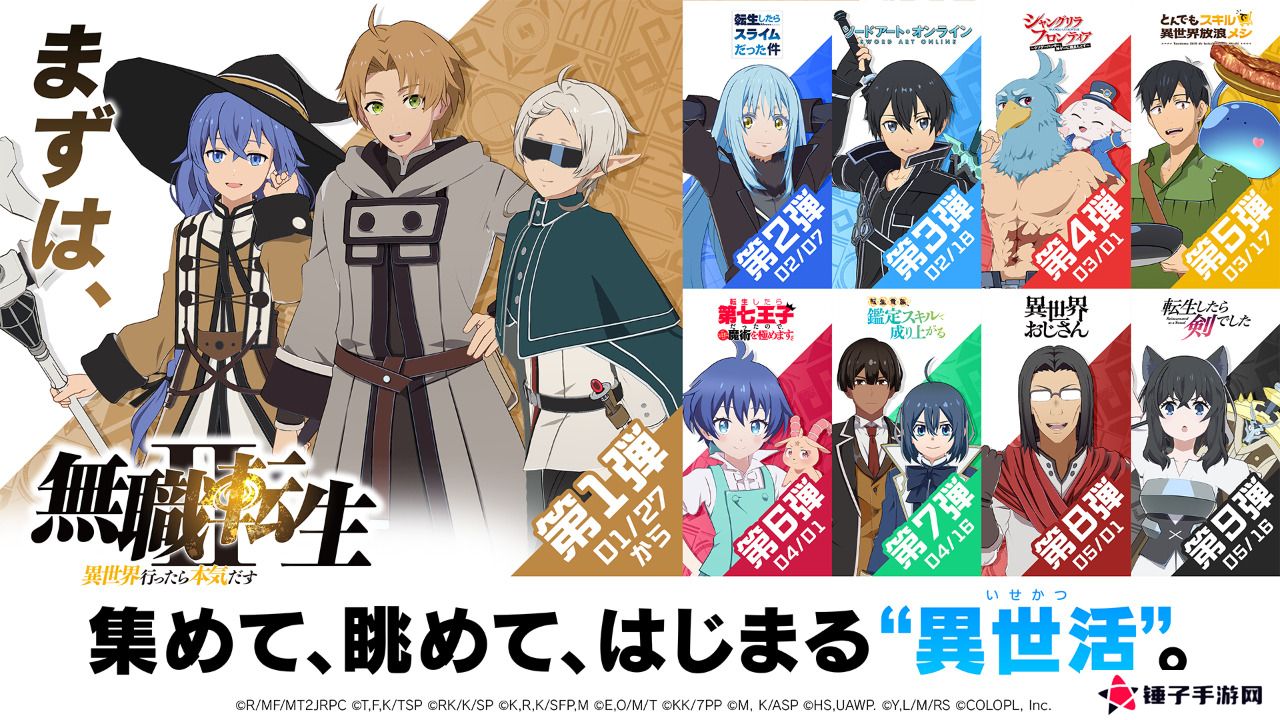 官方透露,游戏的第一季(1st Season)将分阶段引入9部热门动漫作品,每部作品及其角色将每隔2周依次在游戏中登场。《无职转生 第二季》首波登场,随后包括《关于我转生变成史莱姆这档事》、《刀剑神域》在内的其余8部作品也将依次亮相。