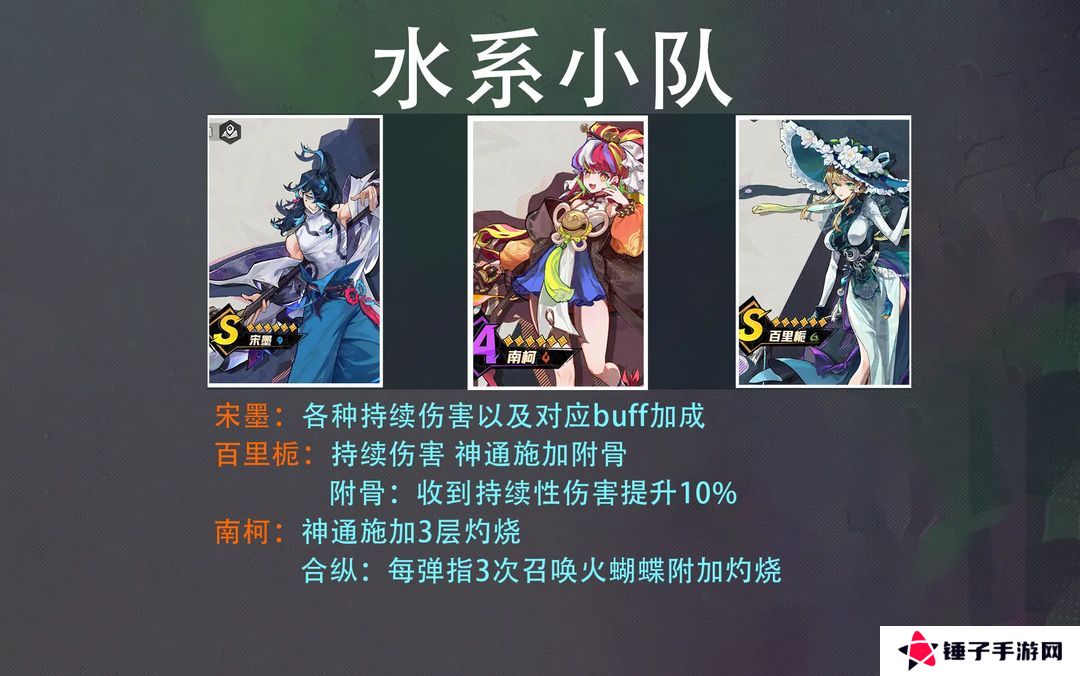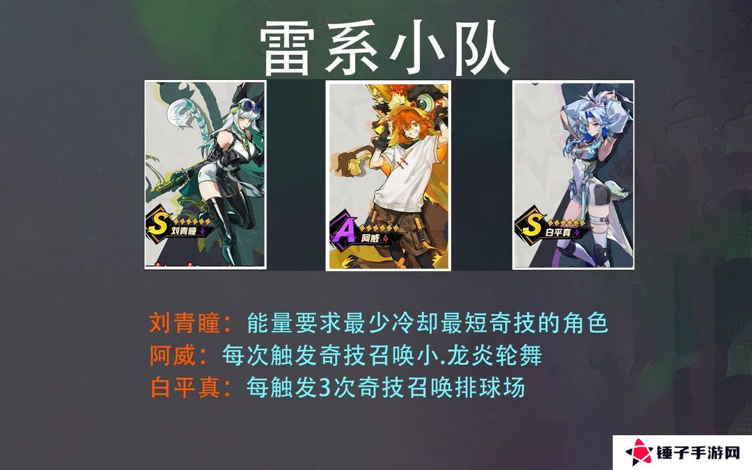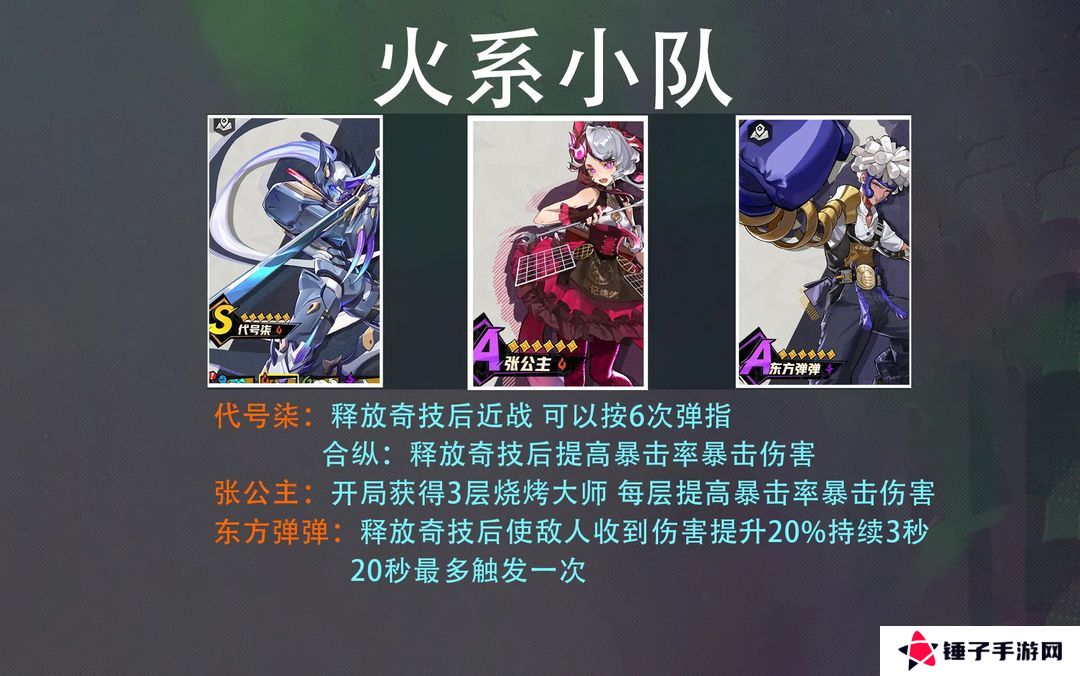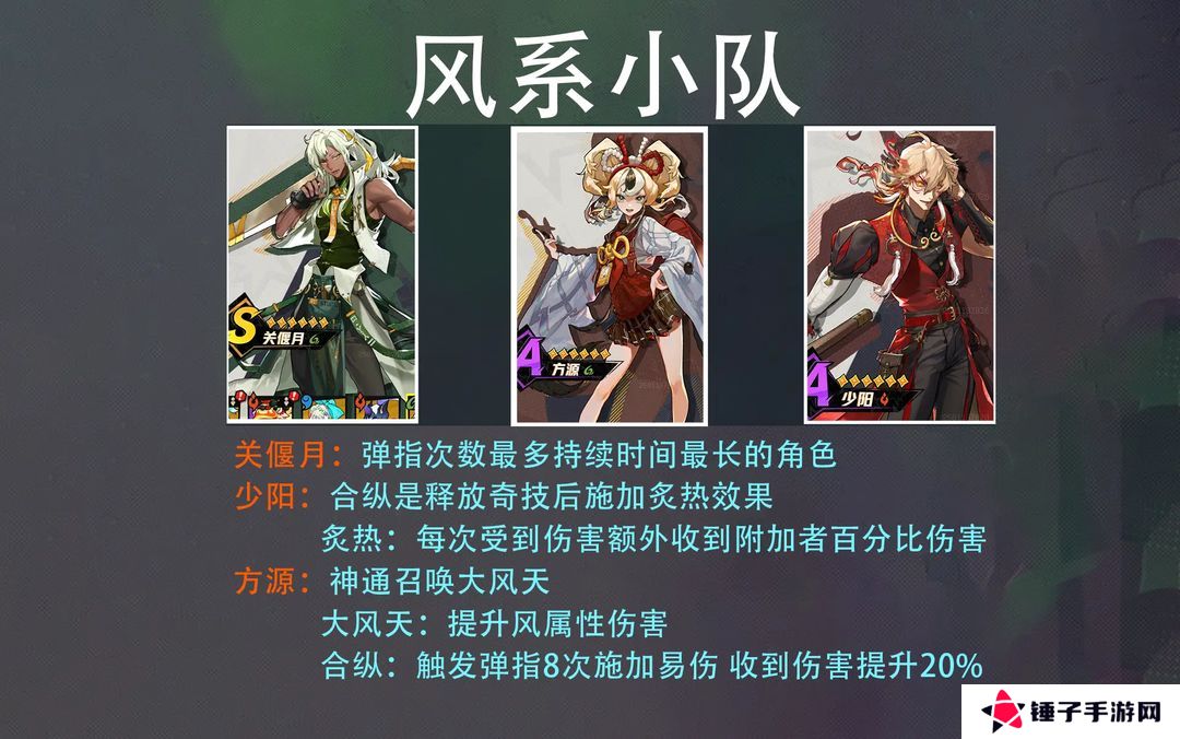 开荒阵容可分为风系、火系、雷系和水系小队,具体的搭配见下图。