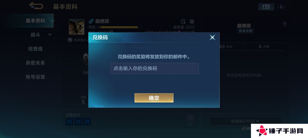 3、在弹出的兑换码窗口中,输入获取到的礼包码;
