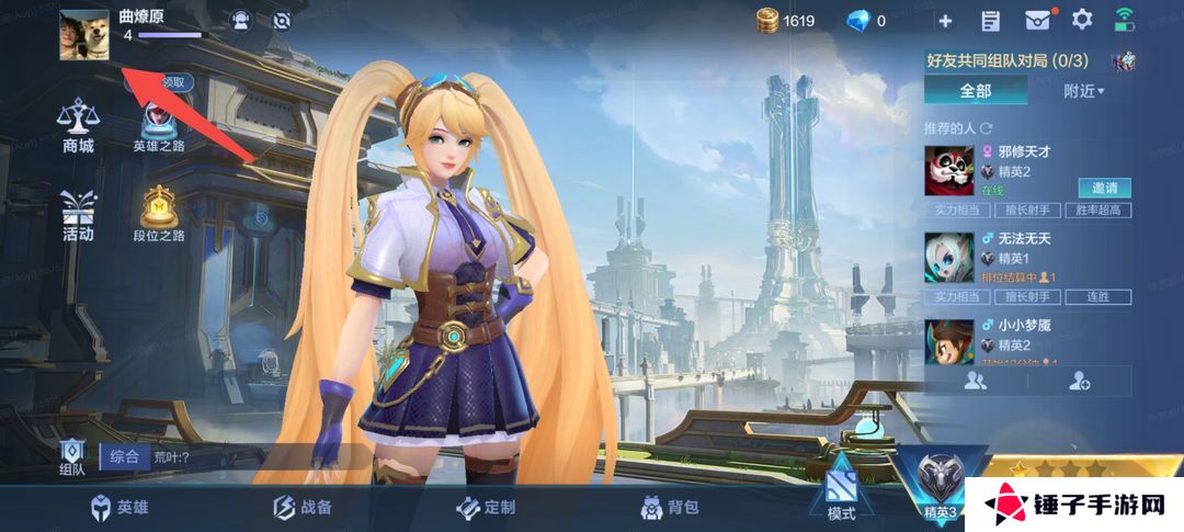 1、点击游戏大厅左上角的头像图标,进入个人主页;