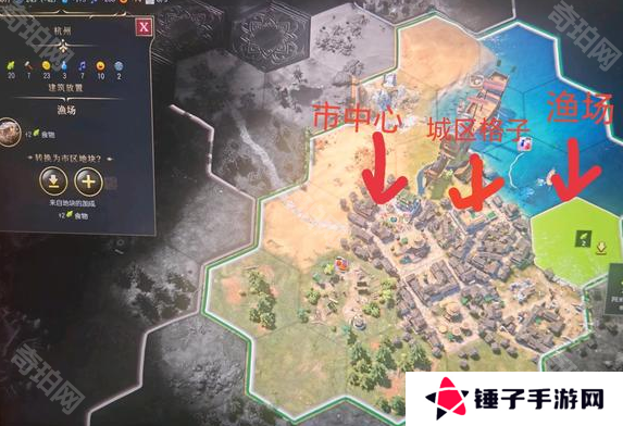 所以我们挨着城区地块的海才可以建造渔场,在海岸、湖泊和可航行的河流上均可建造渔场