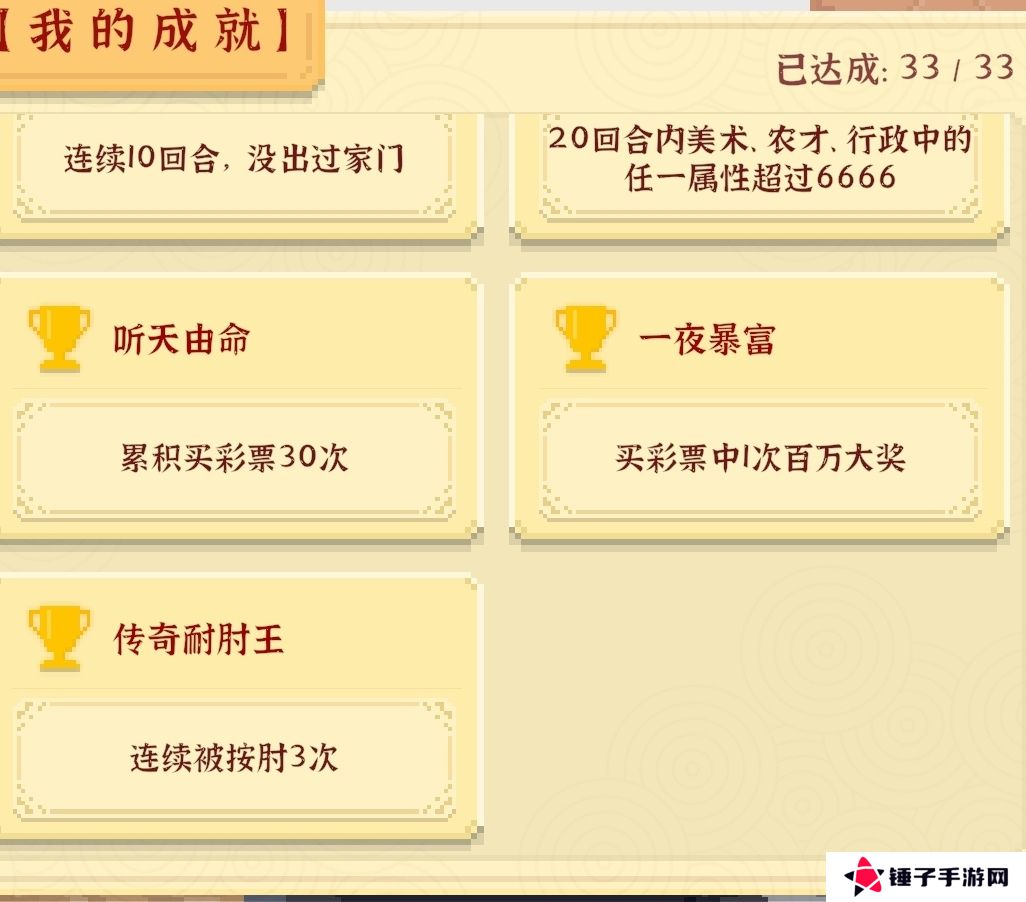7、[新鲜的富一代]和[富起来也就两三个月]和[年少有为]和[听天由命]还有[一夜暴富]可以一起做:我玩的时候还没更新,中**的概率高,所以第一次就中了20万,紧接着第二次就中了100万,所以很轻松,但现在应该变成了阳寿赌场局。注:**在集市礼品店美老板处买。有了100万后直接到高级中学上辅导班就行了。