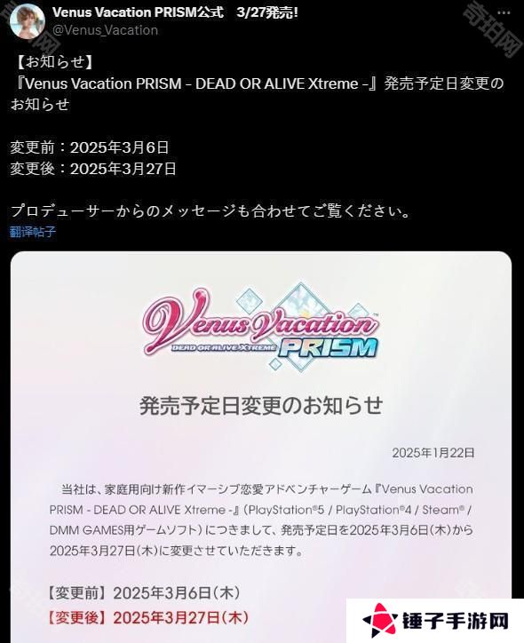 《生死格斗:沙滩排球 维纳斯璀璨假期》发售日将延期至 3 月 27 日。