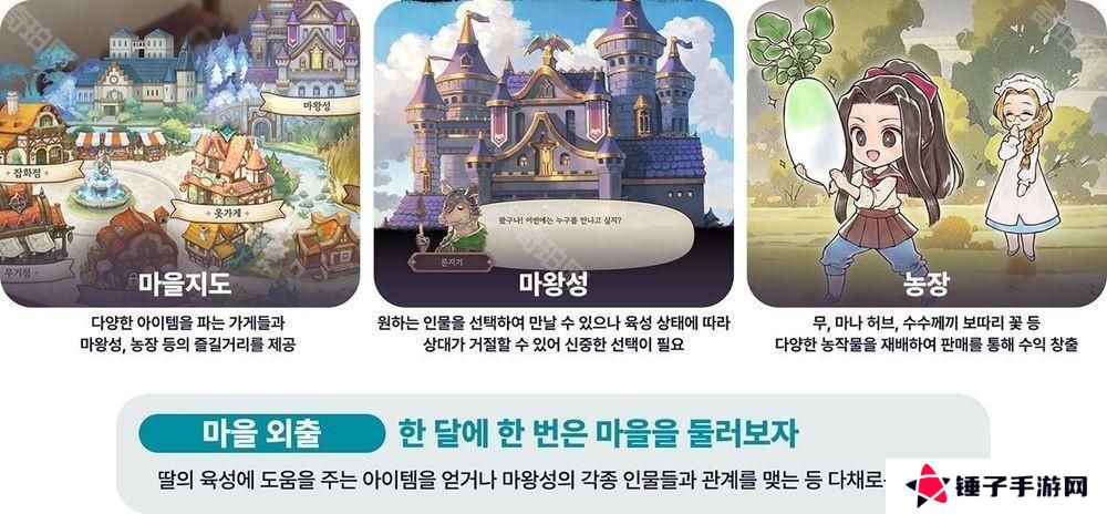 而在新作中,开发团队也重新诠释了系列经典场景。前作中的王宫系统在本作中以「魔王城」的形式回归,玩家将透过与不同角色的对话,影响卡莲的个性与人际关系。游戏内还新增了《美少女梦工厂 天启之子》独有的原创要素「农场经营」系统,玩家可以透过管理农场获取稳定收入,作为支付学习费用与购买道具的资金来源。