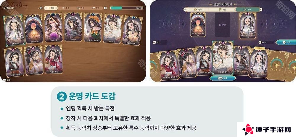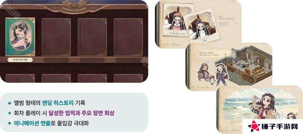 为了提升游戏的可重玩性,本作特别追加了「回忆图鑑」,让玩家能够回顾已解锁的结局,并收藏卡莲成长过程中的关键画面与插图,甚至包含度假插图等特别内容。开发团队也设计了「命运卡牌大全」,这个系统可以帮助玩家在多周目游玩时缩短流程,让玩家能够更容易解锁想要的结局,大幅降低反覆挑战的负担,让玩家能更自由地享受不同结局的变化。