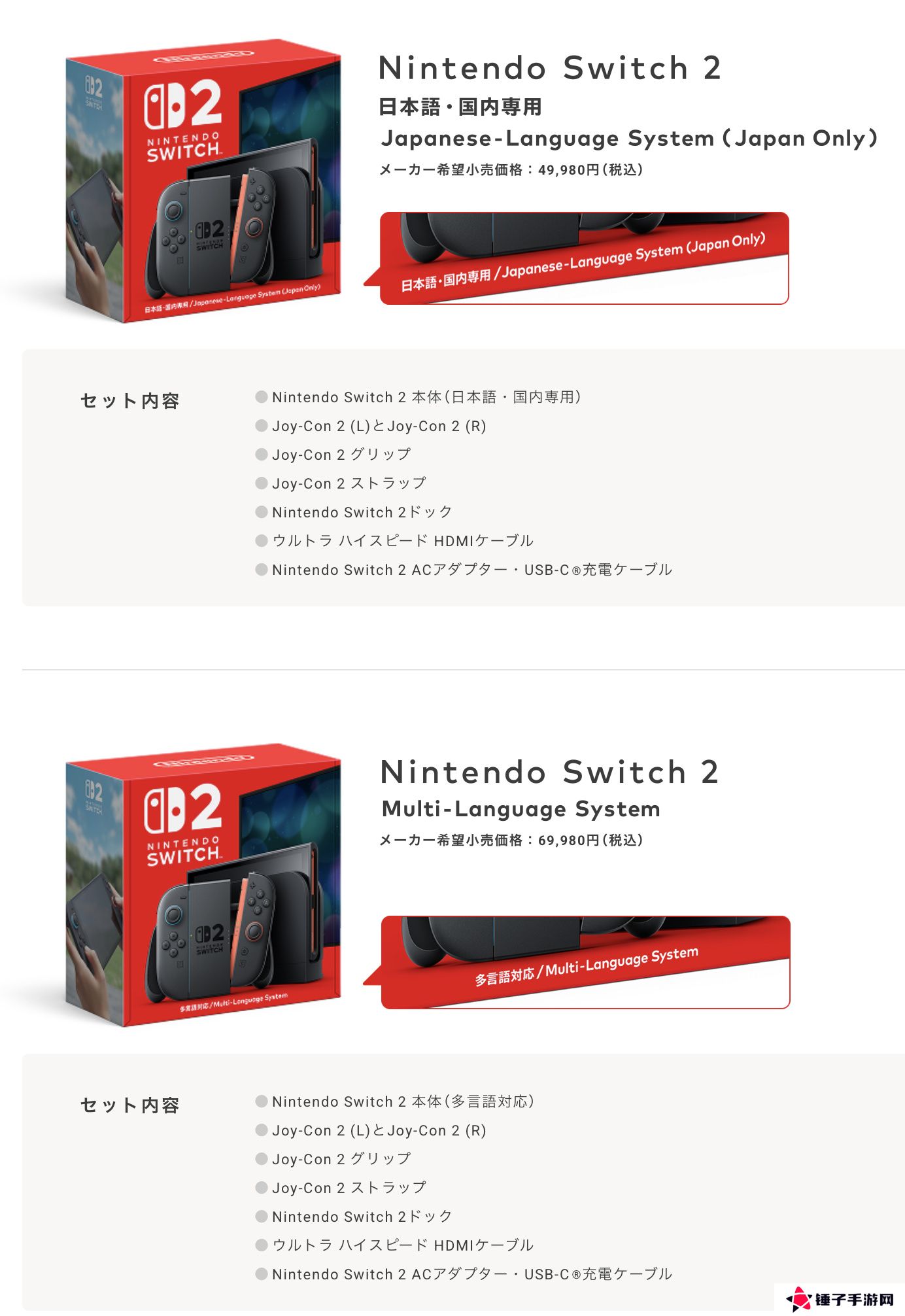 任天堂 Switch 2 各版本区别如下(截图已做机翻处理):
