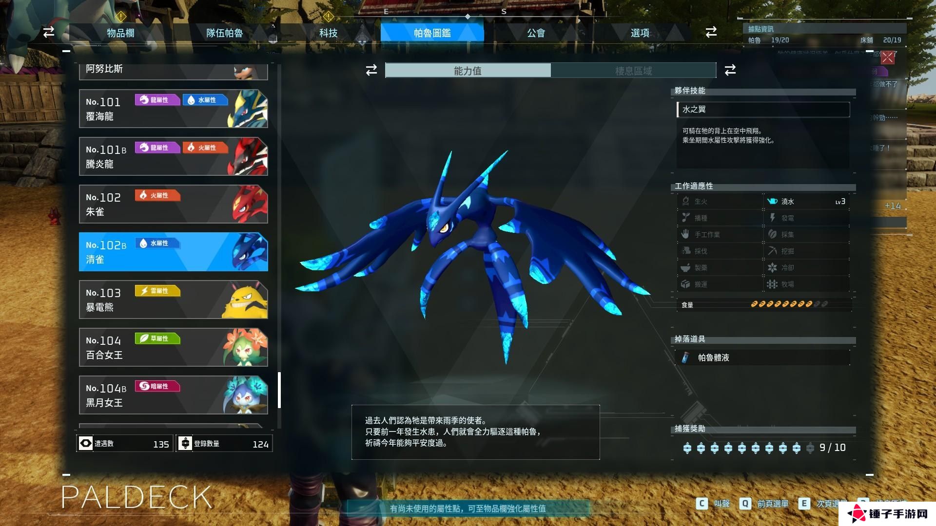 编年史配种值补充:使用bug捕捉到的塔主帕鲁配种值会是9999,但是可以用在限定配方。