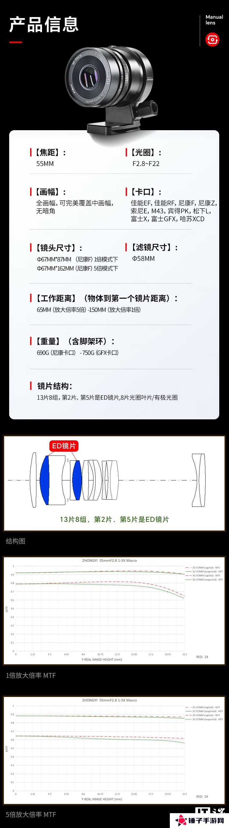 中一光学 55mm F2.8 全画幅微距相机镜头首销:号称“覆盖 4433 中画幅像场”,2630 元