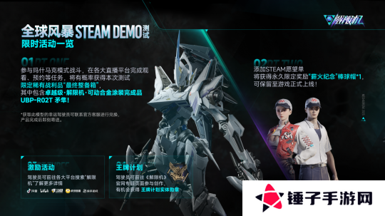 不仅如此,测试期间玩家参与“玛什马克”模式或完成直播平台任务,也有机会通过稀有战利品“最终整备箱”开出实体模型UBP-R02T“矛隼”的兑换凭证。此外,将《解限机》添加至Steam愿望单的玩家还可获得永久限定奖励“薪火纪念”棒球帽。