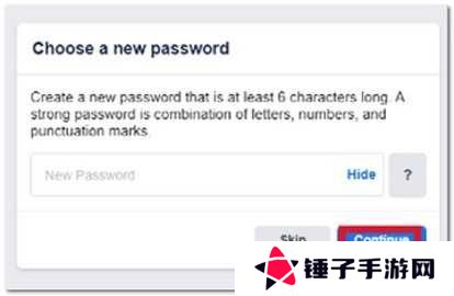 输入验证码后,创建新密码,然后点击“继续”。