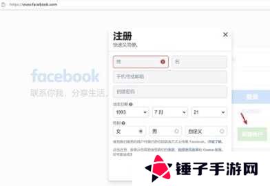 使用梯子访问Facebook官网,点击“新建用户”或“注册”按钮。