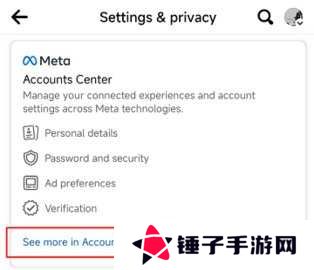 点击“在账户中心查看详情”,然后在“主页”中选择您的Facebook个人档案。
