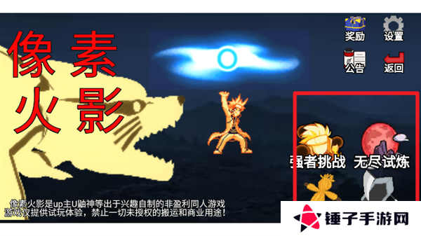 像素火影巅峰斑是一款由B站up主“U鼬神”以火影忍者作为背景题材进行设计打造制作出来的动作冒险对战类手机游戏,游戏采用了像素风格的画面设计,其中拥有着超多不同类型的火影忍者角色,人物形象刻画的非常的完美同时每一个角色所具备的技能都是全方位的还原了出来,让玩家们可以在游戏中体验到原汁原味的火影忍者游戏体验,玩法模式丰富多样等待着爱好者们的游玩挑战,感兴趣的小伙伴们快来本站下载游玩体验一下吧!
