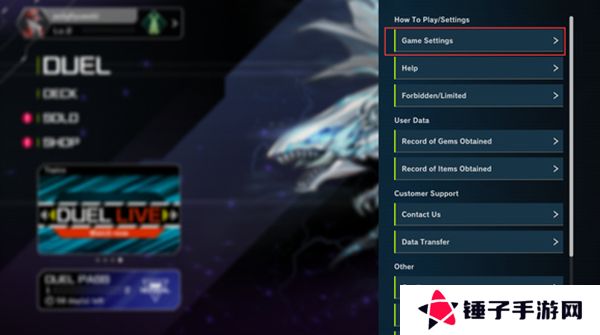 2、侧边栏展开之后,点击第一个【Game Settings】。