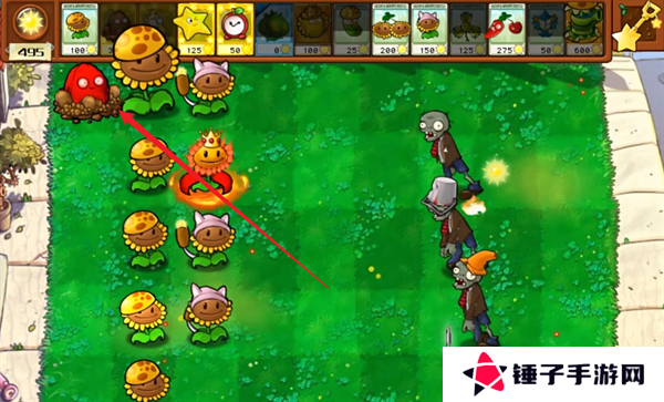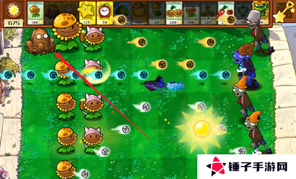 3.你可以种植各种不同的植物来进行作战,将关卡内部的所有僵尸敌人都击败之后就能够通过。