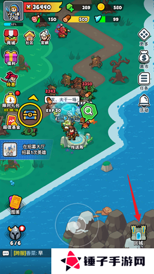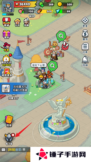 2、回到主城后,玩家们点击左下角的英雄头像图标。